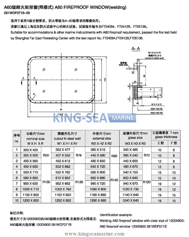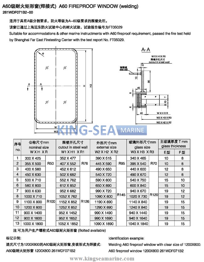 - Marine A60 Fireproof Window welded type