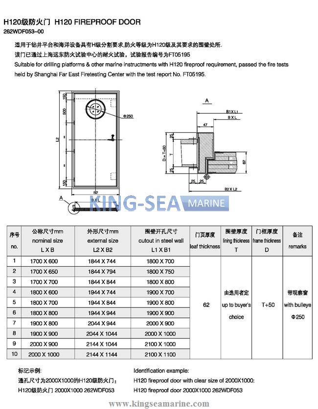 - Marine H120 Fireproof Door