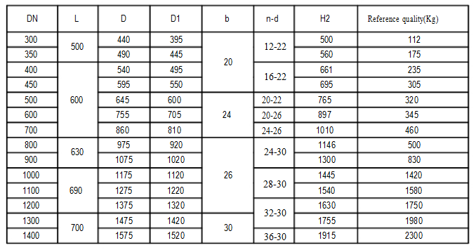 1. Flange connection dimensions carry out the provisions of GB/T9199-2000 PN6.